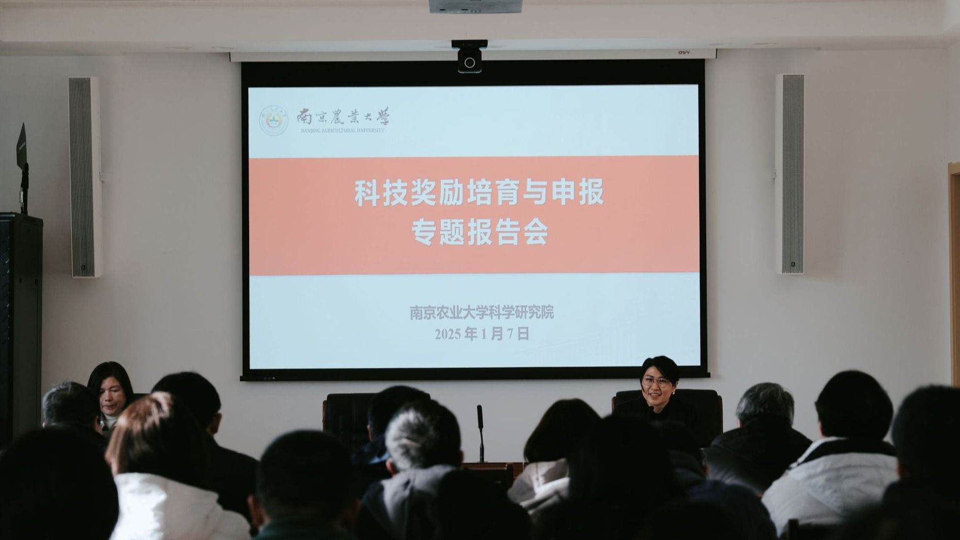 为全力提升 2025 年度各类科技奖励申报工作质量,1 月 7 日下午,南京农业大学科学研究院特邀南京工业大学科学研究院副院长袁正英作题为“科技奖励培育与申报”的专题报告。各学院团队负责人、教师代表等60余人参会,科学研究院副院长陈俐主持会议。