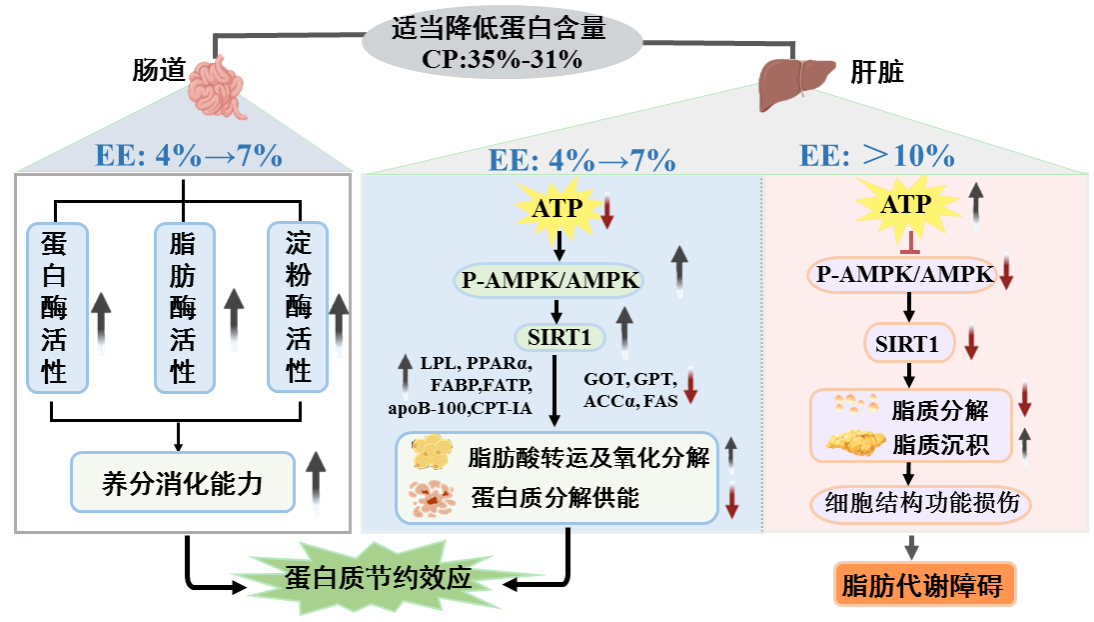 我国是世界水产养殖第一大国,面临较大的降本增效和环保压力。饲料是水产养殖业的最大投入品,存在高蛋白、低利用率和水体污染等问题。脂肪具有节约蛋白和降低氨氮排放等优点,但过量脂肪导致水产动物代谢紊乱、抗逆下降,严重影响动物健康和养殖效益。刘文斌教授团队以我国代表性淡水养殖鱼类——团头鲂为研究对象,揭示了鱼体脂肪节约蛋白效应产生的分子途径,阐明了高脂诱导鱼类营养性脂肪肝的病理过程和分子机制,基于“肠-肝轴”提出了肠道屏障和菌群稳态介导鱼类脂质代谢的新途径,并研发了靶向脂代谢调控剂,为水产动物高效利用脂肪和蛋白资源提供了技术支撑。近3年,累计推广饲料25万吨,应用水面40万亩,饲料利用率提高了15%以上,氮磷排放减少了5%以上,取得了重大的经济、社会和生态效益。