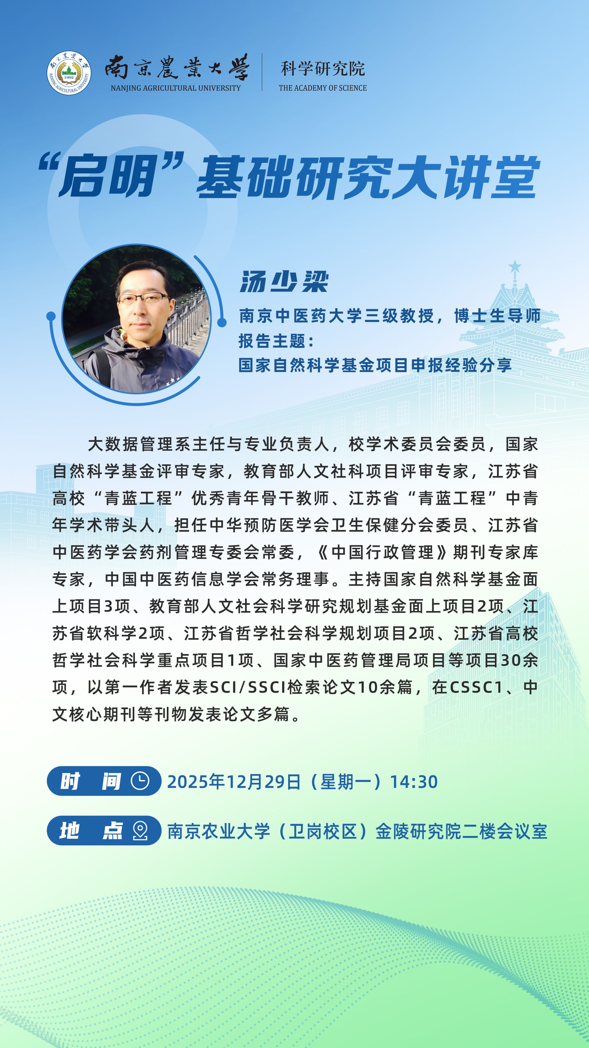 科研院 | “启明”基础研究大讲堂——汤少梁:国家自然科学基金项目申报经验分享